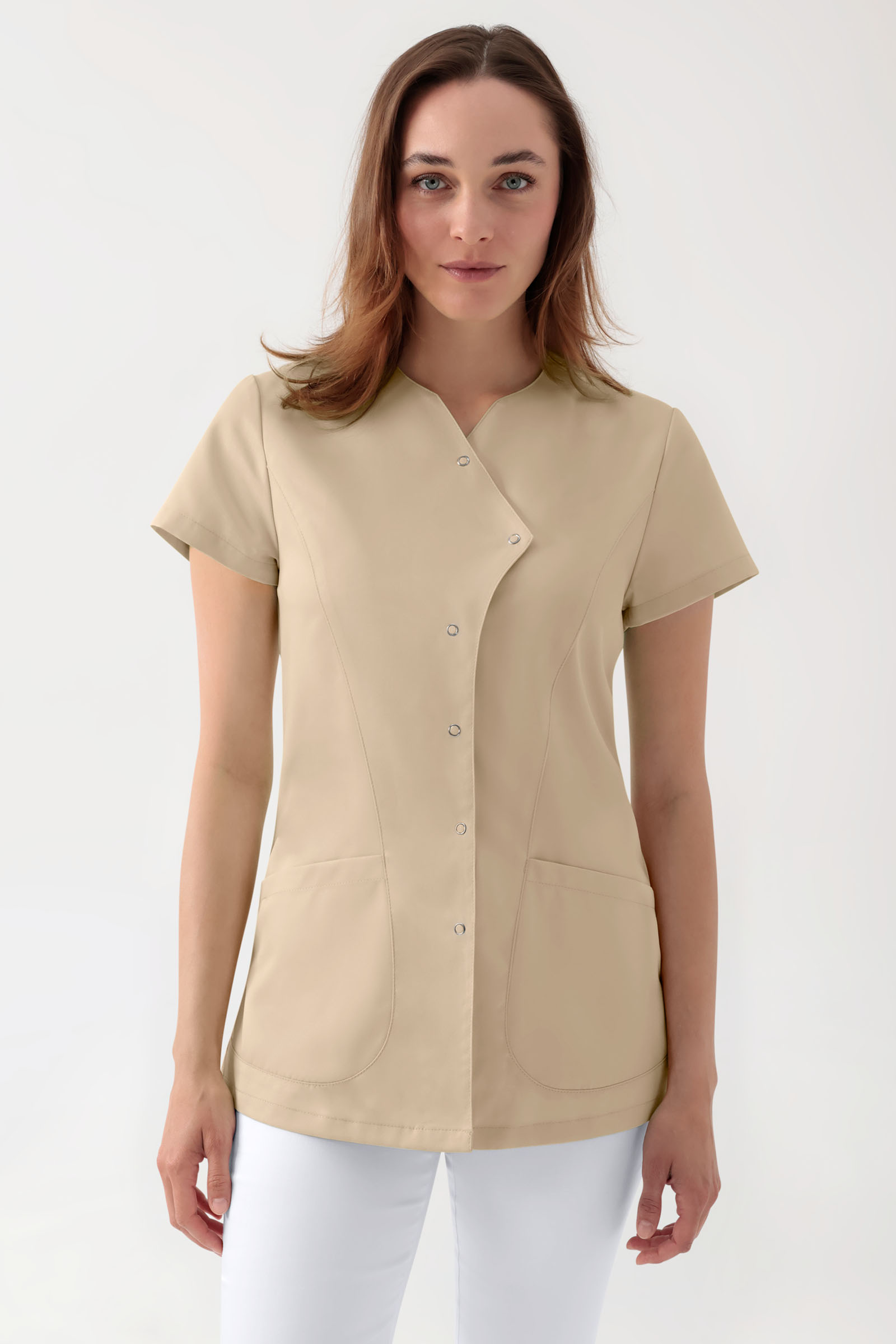 GREEN veniv tuunika naistele – asümmeetrilised trukknööbid, liivakarva