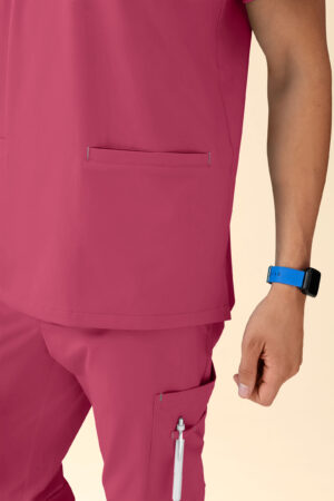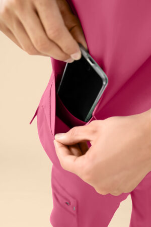 - 72% polüester (25% taaskasutatud)/19% viskoos (puidupõhine)/9% elastaan (4-suunaline venivus)