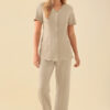 • 72% polüester (taaskasutatud polüester)/19% viskoos (puidupõhine)/9% elastaan ​​(twill, 4-suunaline veniv kangas)